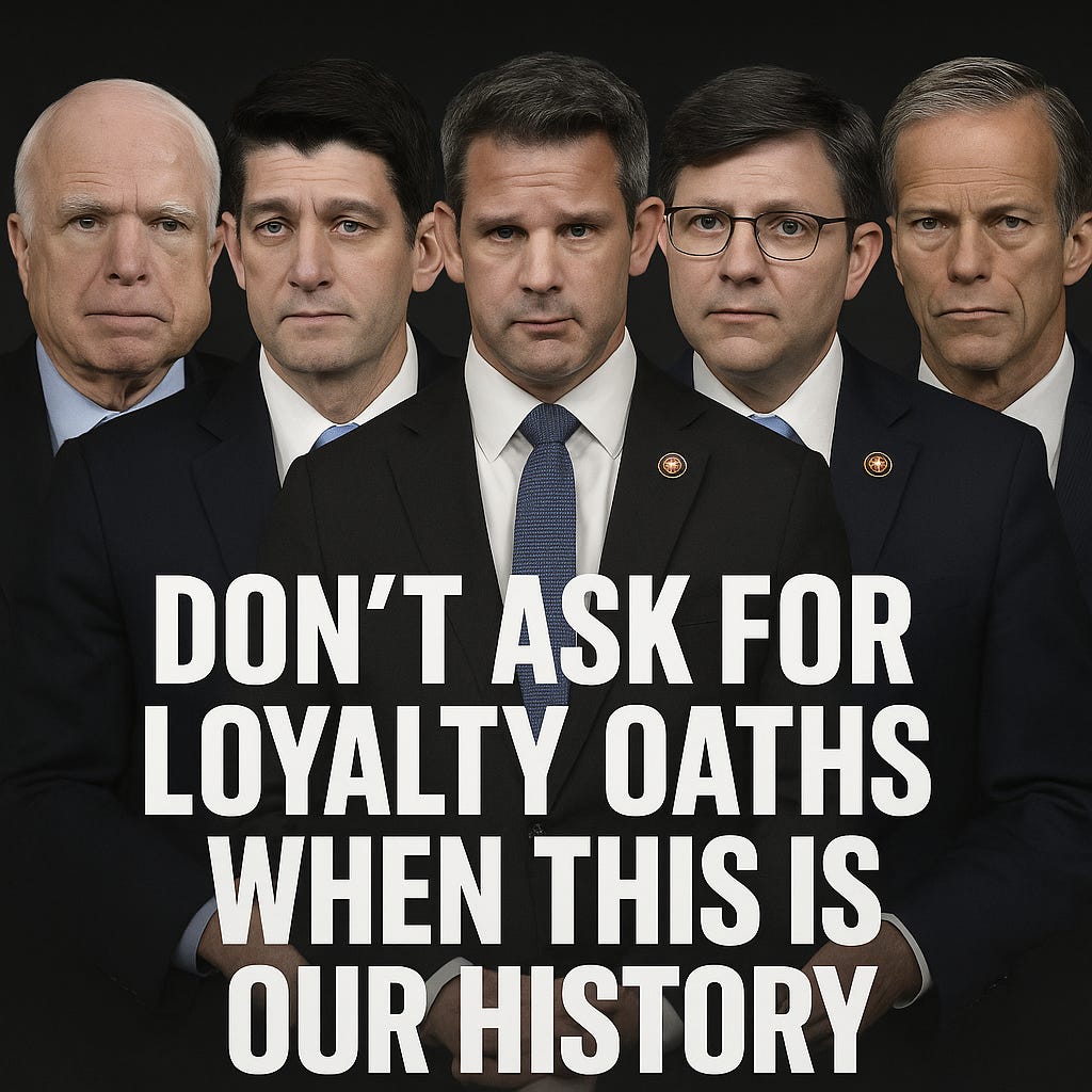 Loyalty to the country and the truth comes before loyalty to a party that has sheltered, rewarded, and elevated people who have undermined our own president with Democrat oppo research, DOJ/FBI abuse, media cooperation, and procedural sabotage.