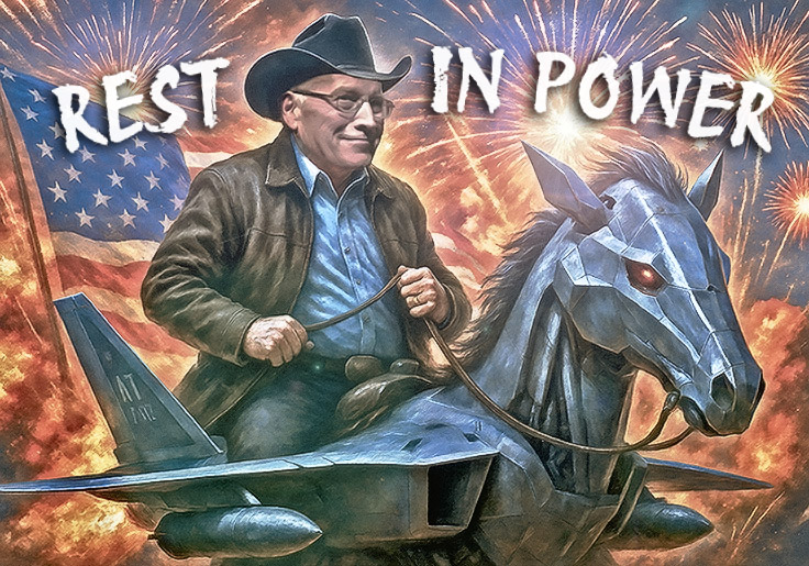 Dick Cheney, the widely beloved wartime vice president, oil executive, and outdoor sports enthusiast, entered the kingdom of heaven on Monday to avoid watching New York City be overtaken by a trust fund communist who loves terrorism. He was one year and nine months older than Joe Biden.