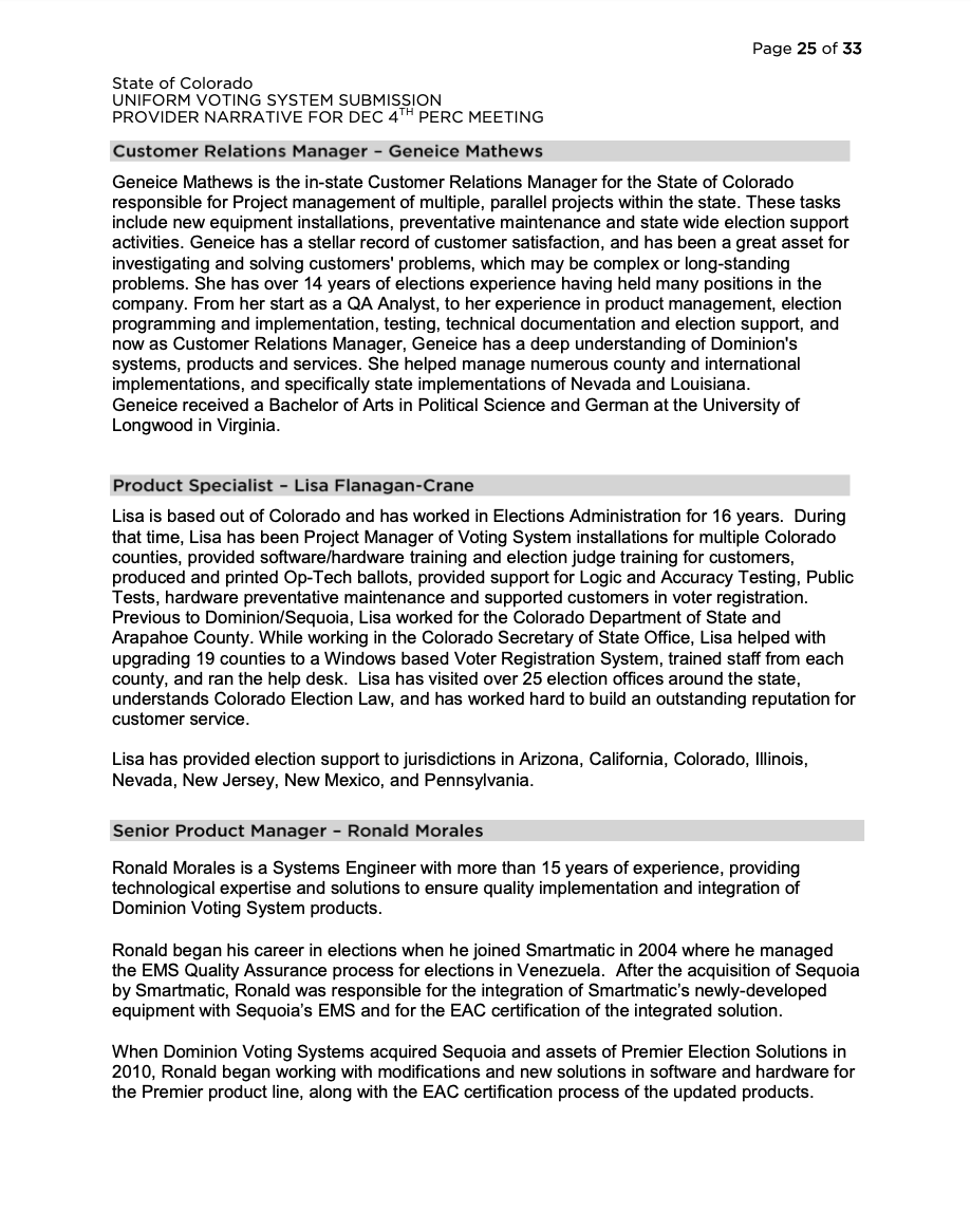Tags: 2015, 2015 Dec 04, CO, colorado, dominion, elections, ems, png Colorado Dominion Voting Systems CO elections dvs matt crane PERC narrative Lisa Flanagan-crane 2015 Dec 04 from Page 25 Flanagan, voting system, voting systems