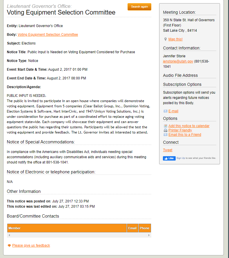 2017 Aug 02 UT VESC Voting Equipment Selection Committee Public Input Demonstration