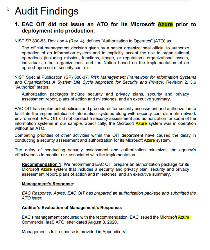 2020, 2020 Aug 03, eac, election assistance commission, election assistance commission 2020 Aug 03 EAC Microsoft Azure Management Response Summary, response