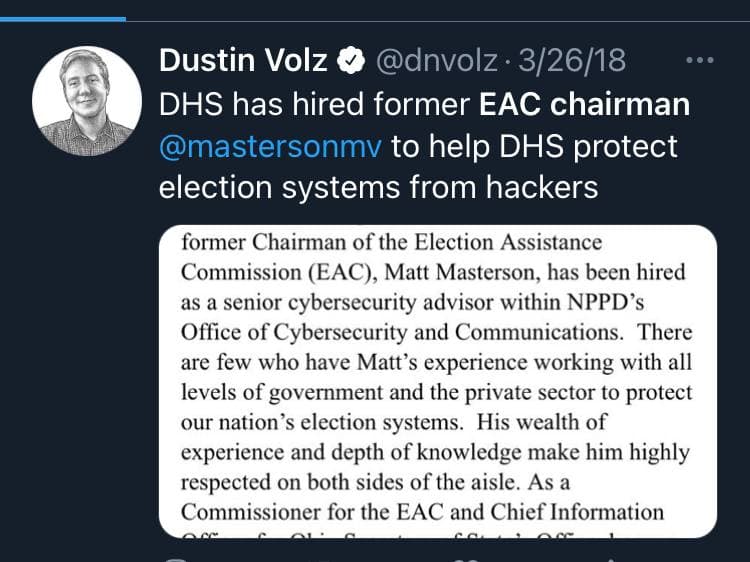 2021, 2021 Feb 22, election assistance commission, election assistance commission 2021 Feb 22 Social Matt Masterson hired as cybersec advisor with NPPD office 2018