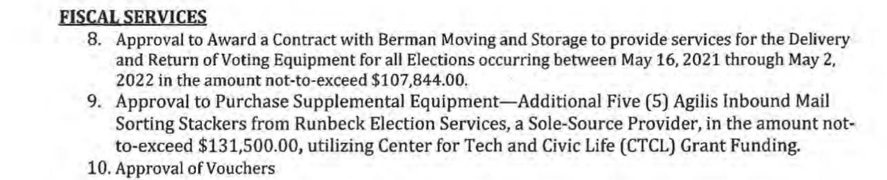 2021 Jun 14 Runbeck Agilis CTCL Funding Used to purchase Ballot Sorting Machine.png