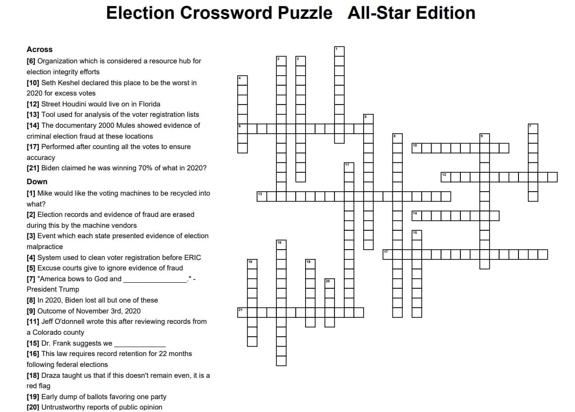 2022, 2022 CoA Education Election Integrity Crossword Puzzle, coa