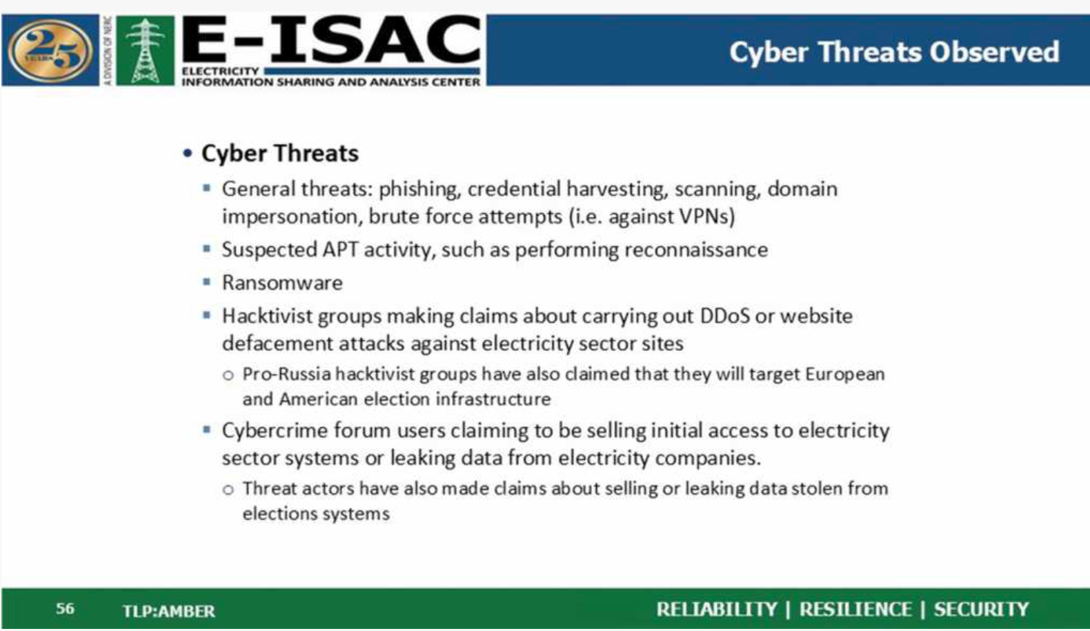 2024 Aug 07 EI ISAC Slide 14 Amber Meeting ITAP powerpoint threats to our elections