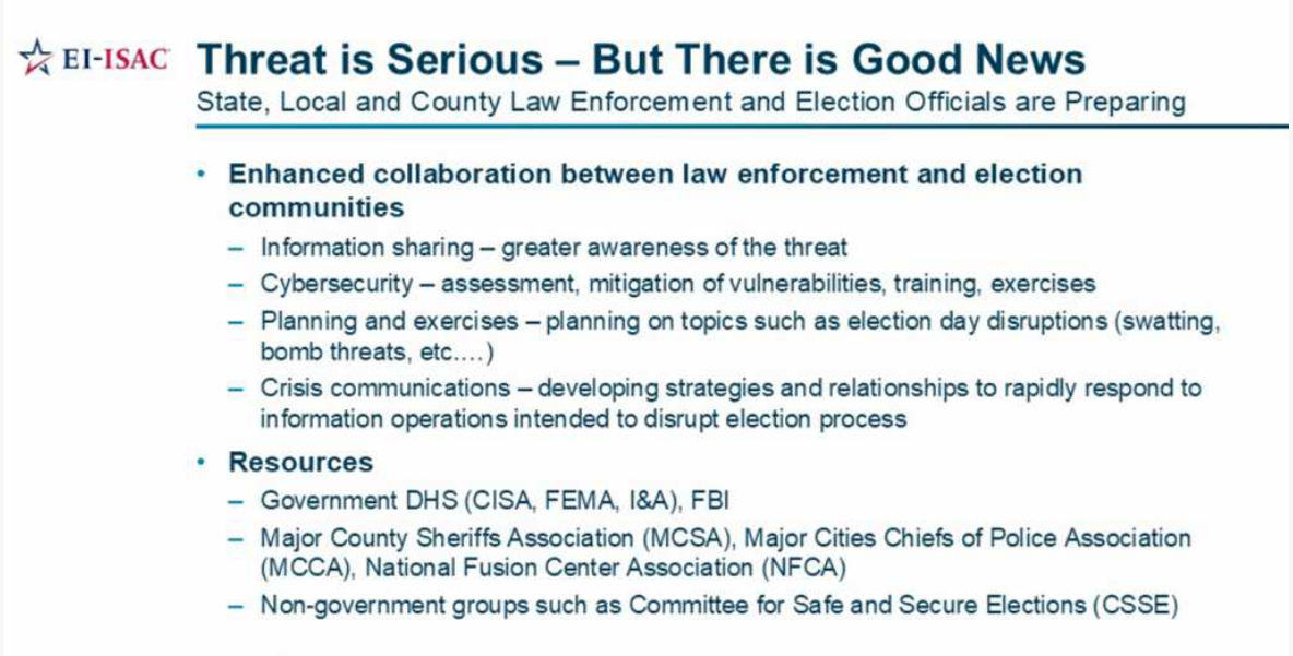 2024 Aug 07 EI ISAC Slide 5 Amber Meeting ITAP powerpoint threats to our elections