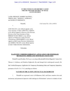 Tags: 2024, Adkins, Bagwell, Escobedo, federal case, Federal Court, Highsmith, Korkmas, law, lawsuit, legal, Nelson, Pressley, Roberts, Soll, temporary restraining order, texas, TRO, TX, Wilson