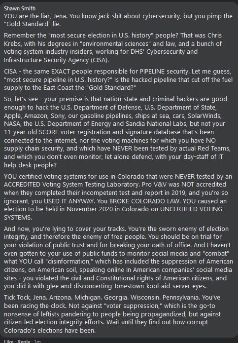 Tags: CO, colorado, Colorado jpg jena griswold CO elections social media Shawn smith UND calls out on SM p2, elections, jena griswold