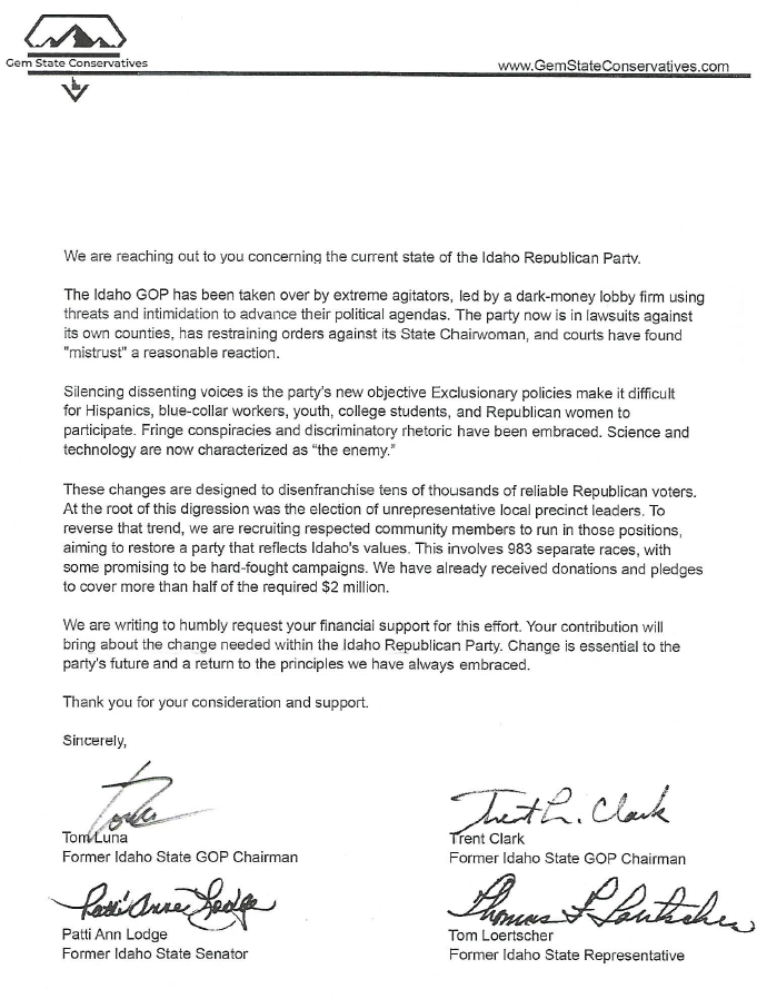 ID, idaho, letter, UND ID GOP taken over by agitators letter Idaho infiltration